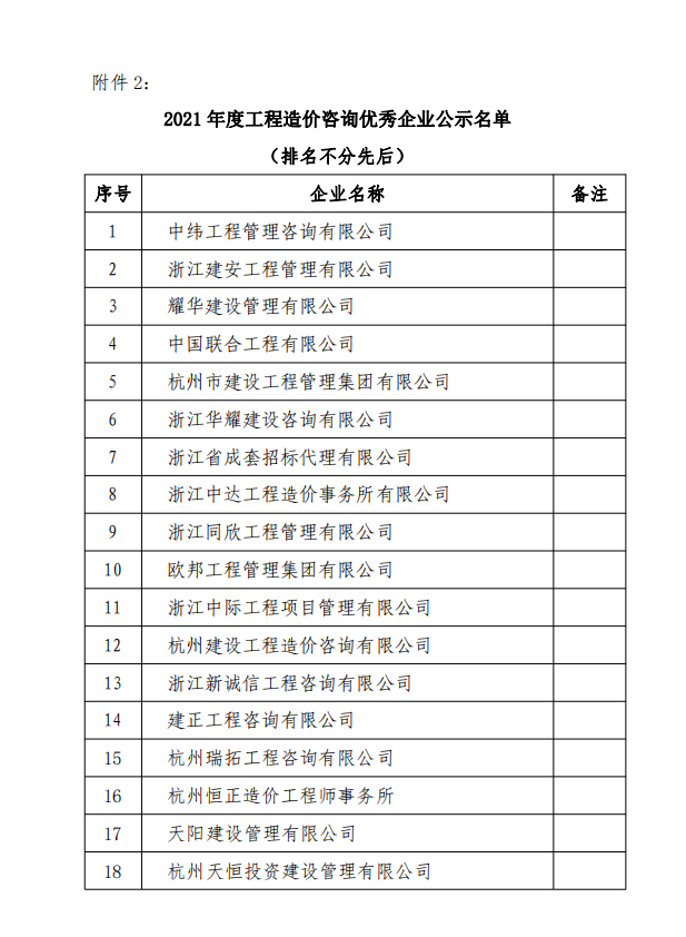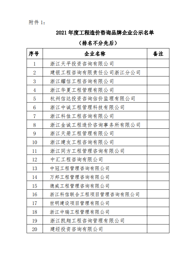 附件:1.2021年度工程造价咨询品牌企业公示名单